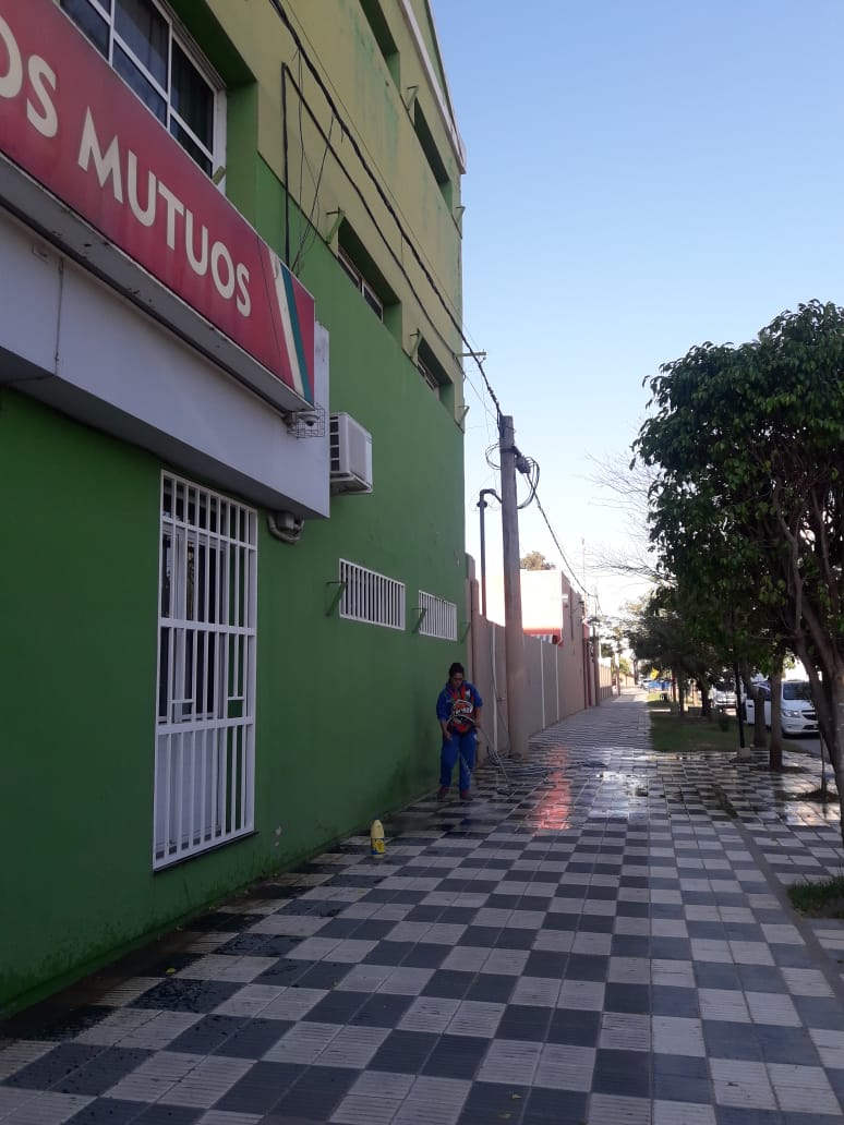 El personal de mantenimiento realiza los trabajos de limpieza en veredas y accesos a la entidad, según los protocolos de prevención, higiene y desinfección por Covid-19 indicados en Resolución Municipal. Además, se están realizando tareas de pintura en el piso deportivo del Estadio Antonio Golob, debido a la disponibilidad al no realizarse prácticas deportivas.