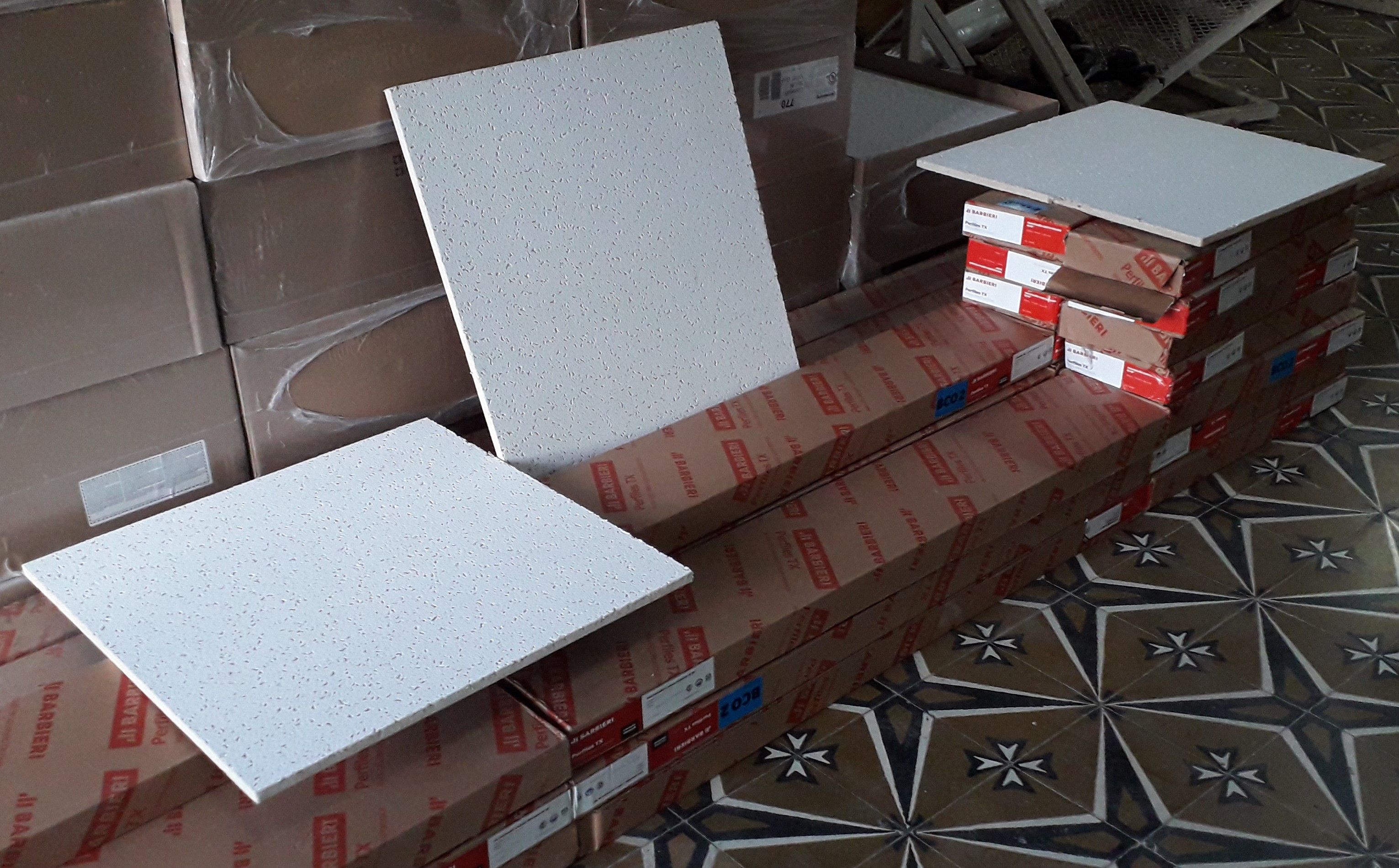 En la jornada de hoy, arribaron desde Capital Federal los 600 metros cuadrados de placas desmontables para ser instaladas en el techo de Microestadio sobre el sector de la cancha. Los paneles desmontables son Armstrong modelo Cortega, con buena acústica y tienen un diseño no direccional. En la jornada del miércoles se recibirán las placas de Pvc que se instalaran en techo de sector de tribuna. La semana que viene llegaran las butacas.-