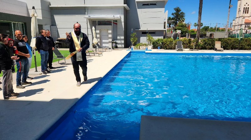 En la jornada del Viernes se realizó la bendición de las aguas del Natatorio de Asociación Italiana realizada por el cura Párroco Mario Marquez.
