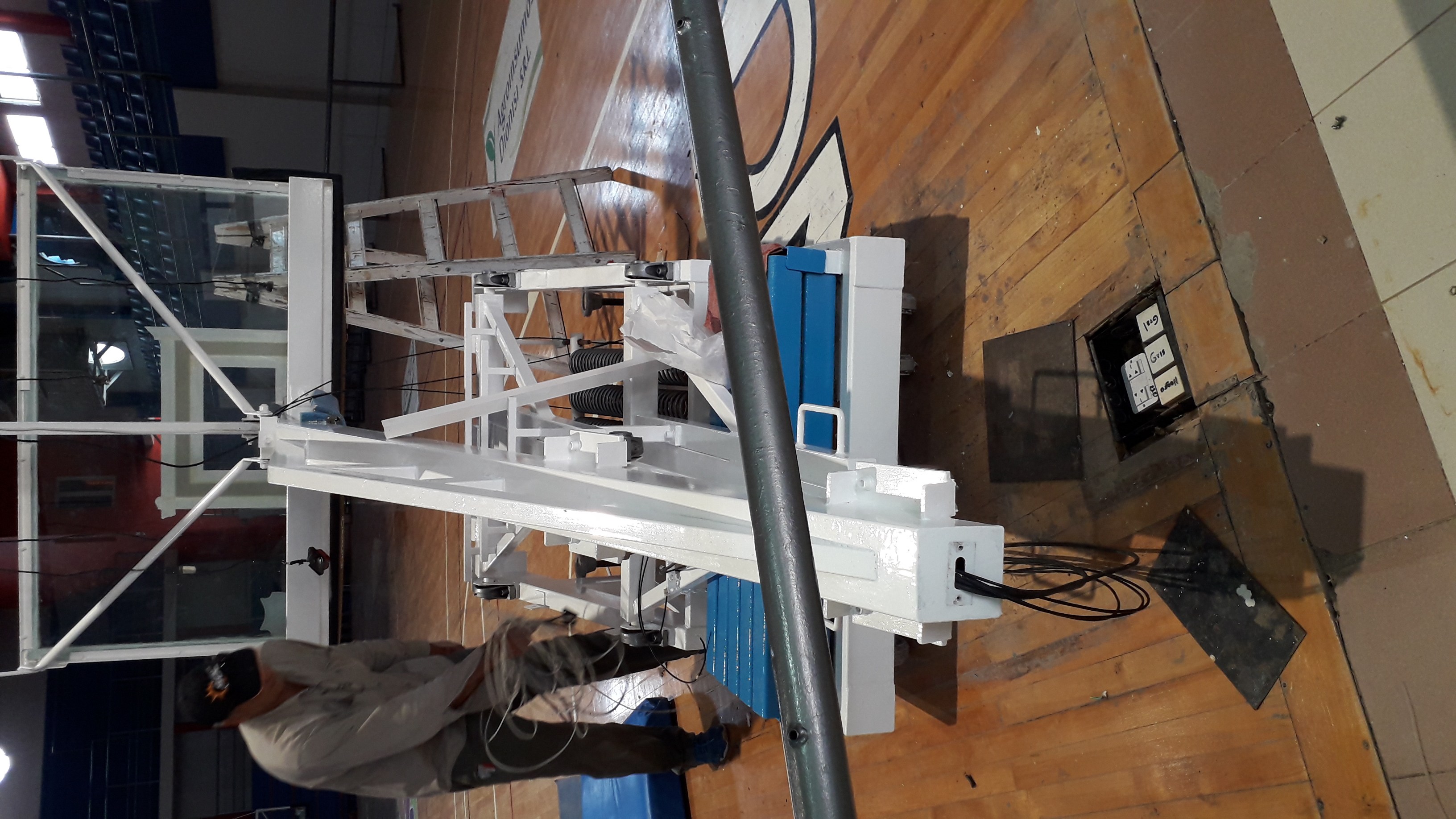 En estos días de receso, el personal trabaja en tareas de pintura y mantenimiento en las jirafas profesionales de básquet del Estadio principal y el acondicionamiento del cableado de relojes de cara al inicio de la temporada deportiva.