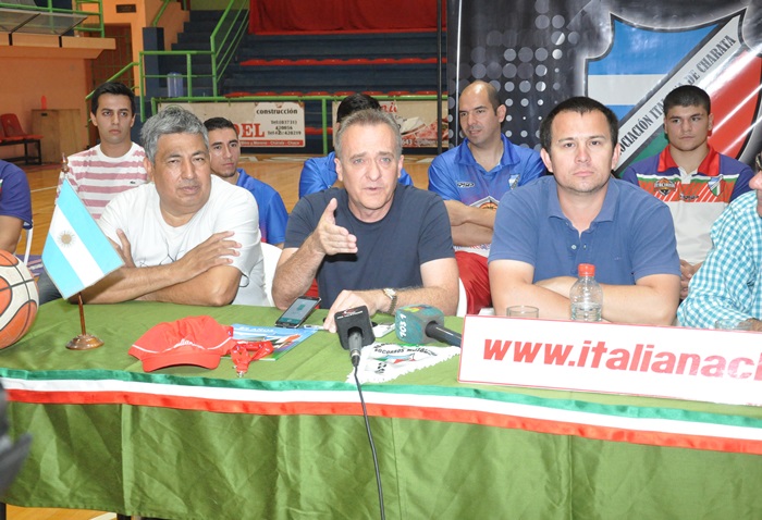 Hace instantes Asociación Italiana de Charata presentó el plantel que afrontará el torneo Provincial de Clubes de primera división. Liderados por el Presidente Mario Vattolo, integrantes de la Comisión Directiva, jugadores y cuerpo técnico el contacto fue con la prensa que se acercó hasta el estadio "Antonio Golob". También en esta oportunidad estuvieron presentes los señores Federico Herfarth Presidente de la Subcomisión de básquetbol y Silvio Becher al frente de las categorías del Mini. Recordemos que los Tanos debutan mañana a partir de las 22 horas frente a Social de Las Breñas.