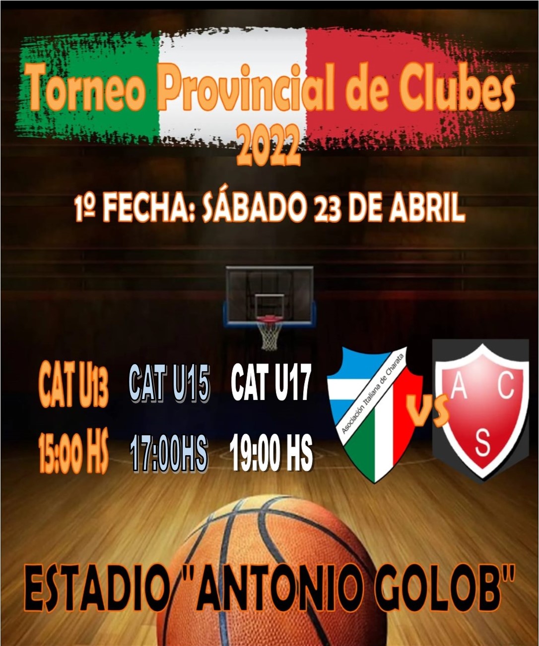 Se viene otra edición del superclásico charatense. Los tanos reciben a Asociación Española en la 2da fecha del Torneo Asociativo en categoría Mayores a partir de las 21:30hs en el Estadio Antonio Golob. Te esperamos para alentar y vivir otra gran fiesta del basquetbol. Habrá servicio de cantina con bebidas, hamburguesas y choripanes. Entrada General $250.
