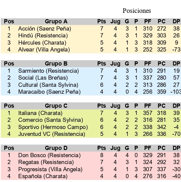 dom 07/nov 21,00 Cultural (Sta. Sylvina) 65 vs. Social (Las Breñas) 73 Ranea, Fabricio Arriola, Leandro Oliva, Enrique