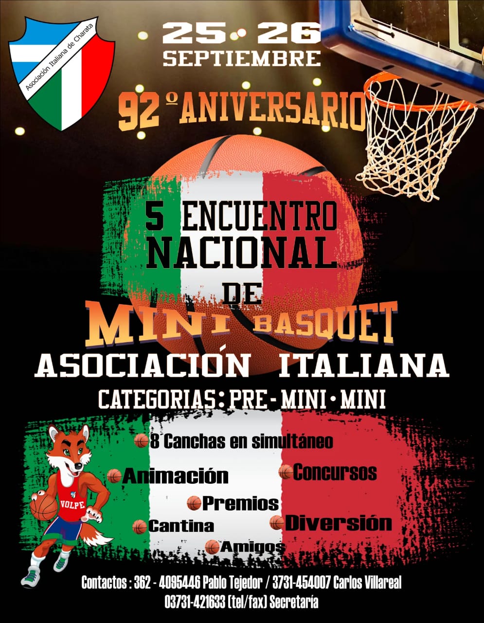 Ya se siente el sonido del pique de las pelotas. Este fin de semana los chicos en categoría Mini llenaran las instalaciones de Asociación Italiana. 10 clubes, 14 equipos, más de 180 chicos, estarán presentes en 5° Encuentro Nacional 92° Aniversario de la Institución. La subcomisión trabaja incansablemente junto al personal y profes, marcando las canchas, preparando las cantinas, reparando y pintando las jirafas. Los esperamos para el acto inaugural para el sábado por la tarde a las 18:30hs. Sera toda una fiesta del básquet.