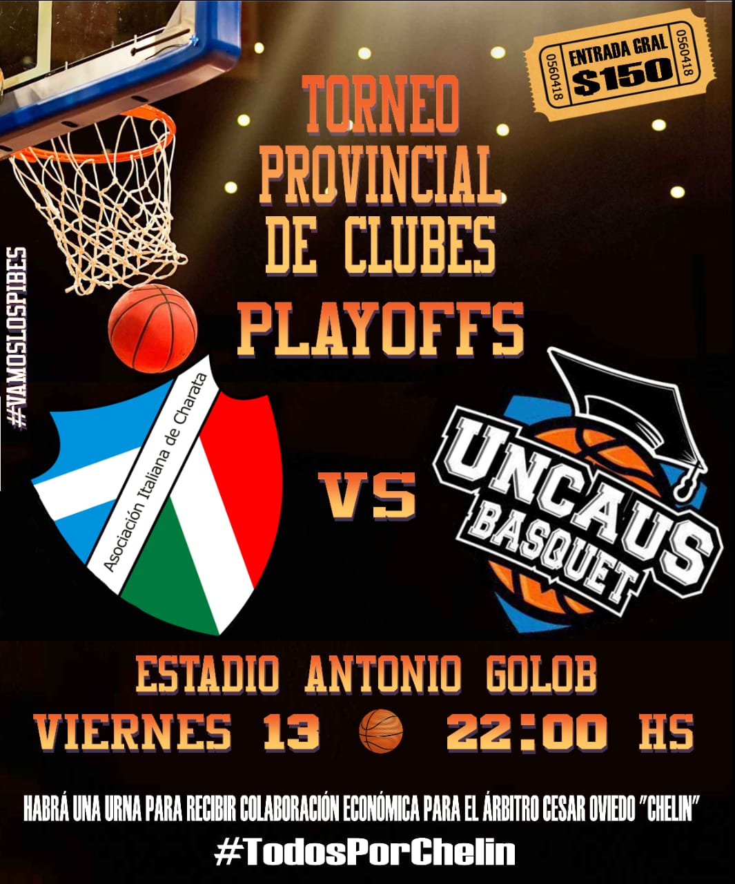 Este Viernes se jugara el 1er juego de la serie de Cuartos de Final del Torneo Provincial de Básquet entre Asociación Italiana y Uncaus de Presidenica Roque Sáenz Peña en el estadio de calle Monseñor de Carlo a partir de las 22hs. Los tanos vienen del receso con la ansiedad por entrar al capo de juego, mientras que Uncaus paso su llave de reclasificación sin sobresaltos ante Don Bosco. Un partido de alto nivel entre dos equipos parejos. ¿Quién se llevara el primer punto de la serie?  Todos a alentar a los pibes del tano.