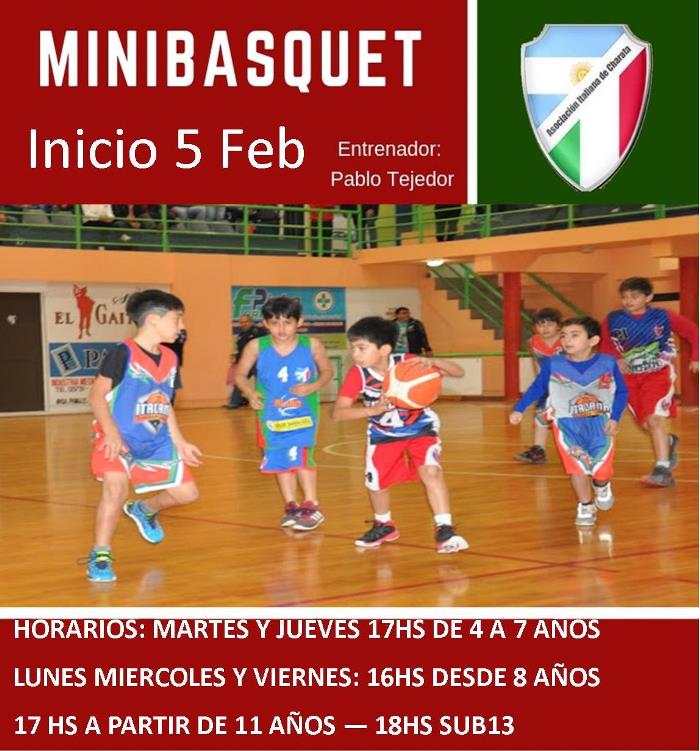 Señores papis, ya arranco el minibásquet de la mano del Profesor Pablo Tejedor con los siguientes horarios y categorías para niñas y niños: