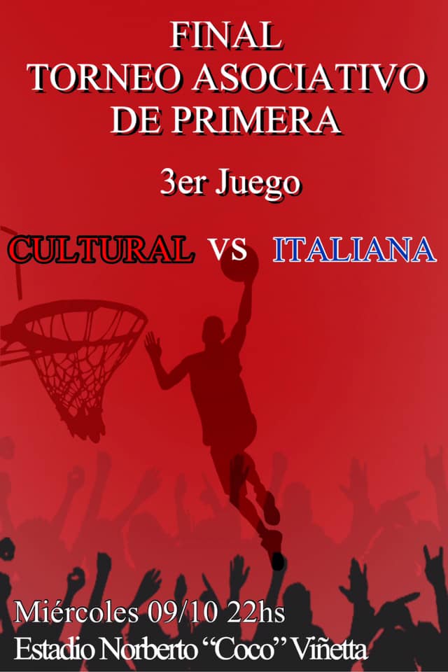 jueves 07/nov 21,30hs  CUNE (Rcia) vs.  Italiana (Charata)