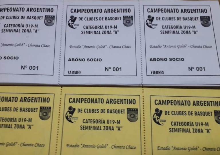 Ya se encuentran en secretaria, los abonos en venta a $250 para las tres jornadas del Campeonato Argentino de Basquet U19 Masculino. Acercate a la sede del club, o consulta a integrantes de la subcomisión de minibaquet. No te pierdas el mejor basquet de nivel nacional en Charata. Apoyemos a los pibes que quieren llegar a la Final.