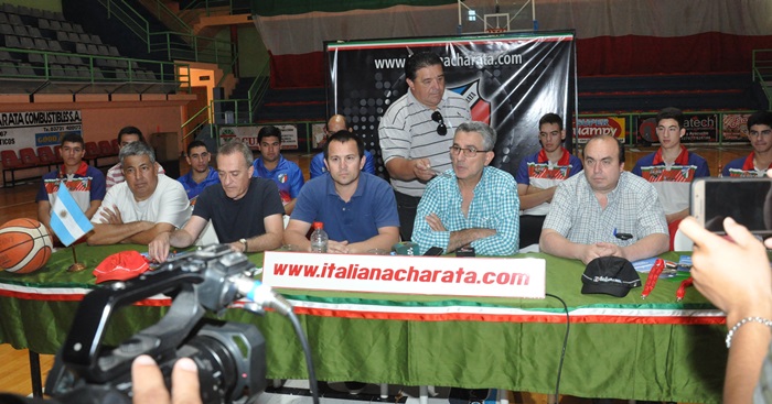 Hace instantes Asociación Italiana de Charata presentó el plantel que afrontará el torneo Provincial de Clubes de primera división. Liderados por el Presidente Mario Vattolo, integrantes de la Comisión Directiva, jugadores y cuerpo técnico el contacto fue con la prensa que se acercó hasta el estadio "Antonio Golob". También en esta oportunidad estuvieron presentes los señores Federico Herfarth Presidente de la Subcomisión de básquetbol y Silvio Becher al frente de las categorías del Mini. Recordemos que los Tanos debutan mañana a partir de las 22 horas frente a Social de Las Breñas.