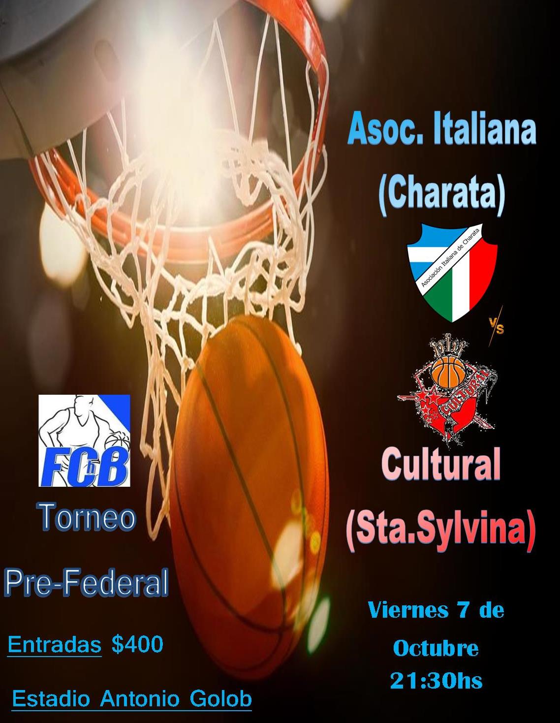 Este Viernes desde las 21:30 horas, Asociación Italiana recibe a Cultural de Samta Sylvina por la 10° fecha del Torneo Pre Federal. Los esperamos para alentar al tano. Entradas General $400. Servicio de cantina.