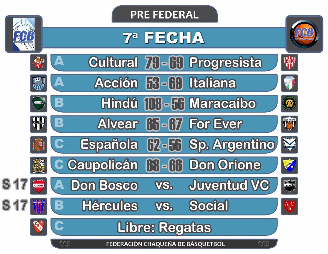 Los dos que lleguen de esa etapa eliminatoria se encolumnarán como séptimo y octavo en la continuidad del campeonato, que tiene a Hindú (1º), Cultural (2º), Caupolicán (3º), Progresista (4º), Social (5º) y Sportivo Argentino (6º), de acuerdo con la producción que les cupo. Ya concluyeron su participación Don, Bosco, Acción, Juventud (A), For Ever, Alvear, Maracaibo (B), Española y Don Orione (C).