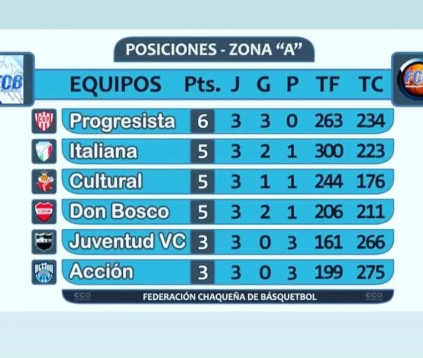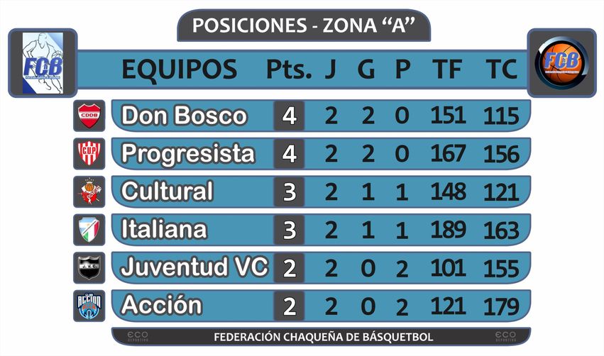 De esta manera, el tano queda 4to en la tabla de posiciones del grupo A con 3 puntos junto a Cultural de Santa Sylvina, debajo de Progresista y Don Bosco que ganaron sus 2 juegos. Aún restan 8 fechas y los 2 primeros avanzan a la siguiente fase, mientras el 3ero ira a repechaje.