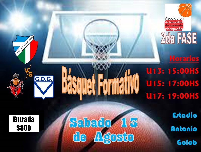 Éste Sábado es el turno de los pibes de salir a la cancha y transpirar la camiseta. Las categorías U13 y U15 reciben a Cultural de Santa Sylvina, mientras la U17 lo debe jugar contra Comercio de la misma ciudad, por la 2da fase del Torneo Asociativo. Acompañe a los chicos que buscan ganar para seguir adelante en el torneo. Habra servicio de cantina con tortillas, golosinas y agua caliente. Entrada: $300. Wifi Libre. Los esperamos.-