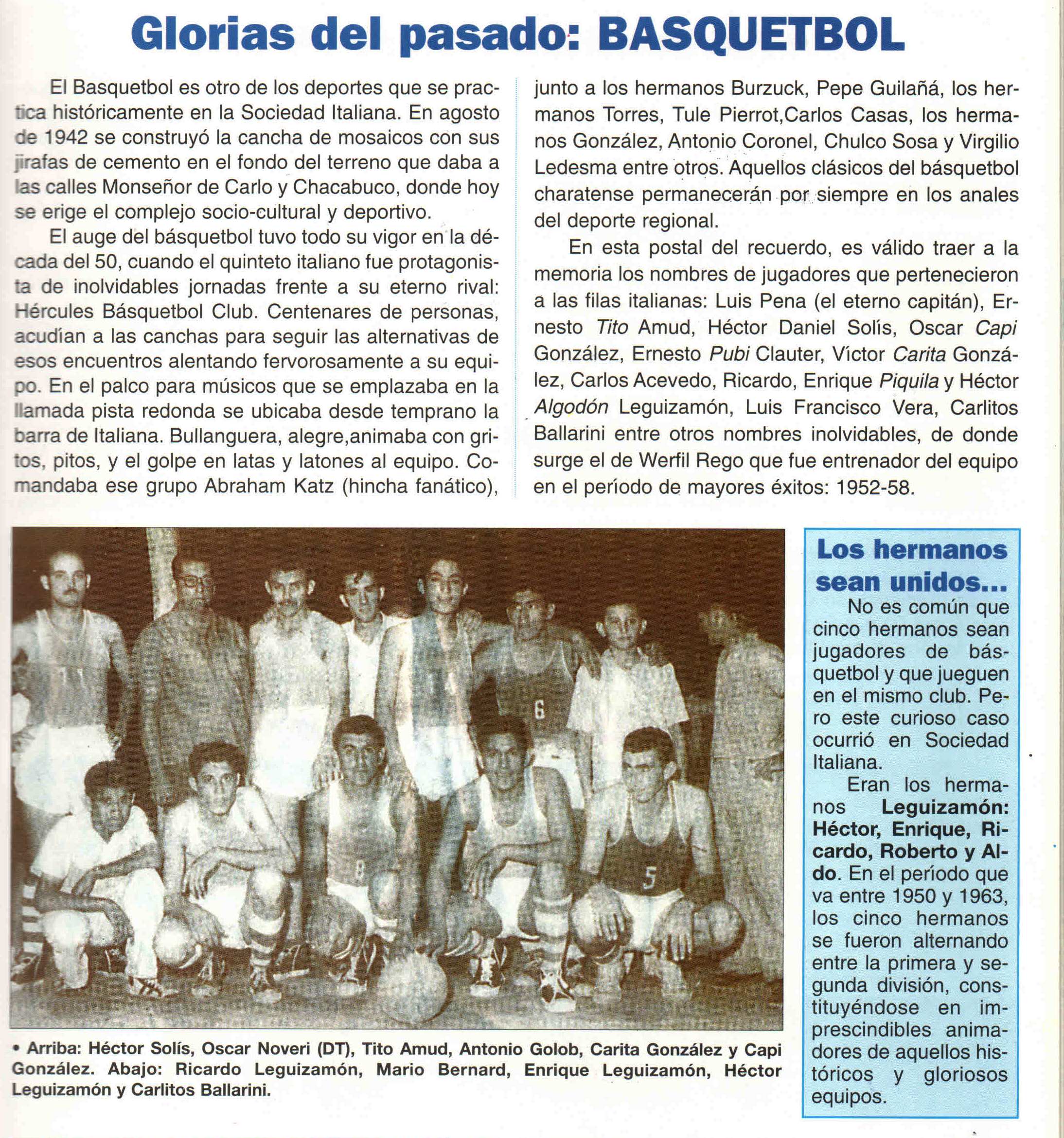 Directos, socios, personal y simpatizantes de ASOCIACIÓN iTALIANA de S.M. de Charata participan del fallecimiento de ENRIQUE "POCHO" LEGUIZAMON a los 88 años de edad acaecido en la ciudad de Buenos Aires. Fue jugador de Básquet de la institución en las décadas del 50 y 60. Enviamos nuestras más sinceras condolencias a sus familiares en tal difícil momento.