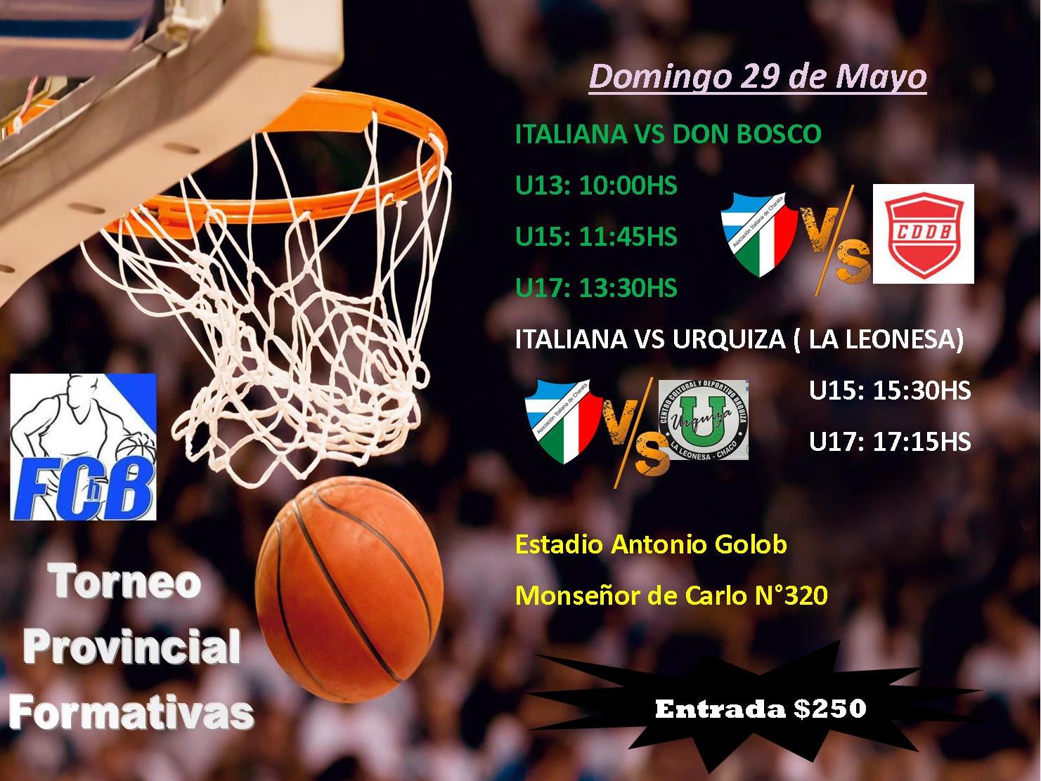 El deporte no descansa en Asociación Italiana. El domingo será una jornada doble por el Torneo Provincial de Básquet en categorías formativas organizado por la Federación Chaqueña donde los tanos reciben la visita de Don Bosco de Resistencia y Urquiza de La Leonesa. Los esperamos para alentar a los pibes. Habrá servicio de cantina.