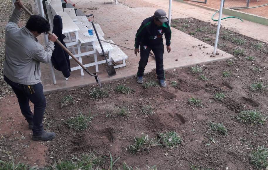 El personal del club se encuentra abocado a la colocación de panes de césped en sector circundante a las canchas de tenis,donde se ubican las gradas, en el polideportivo de la Institución ubicado en el Barrio Ulm. Un arduo trabajo que tiene el objetivo de embellecer dicho sector que hoy se destaca por el normal desenvolvimiento debido a que la actividad tenística esta habilitada desde hace 2 meses y cuenta con buena asistencia de socios practicantes.