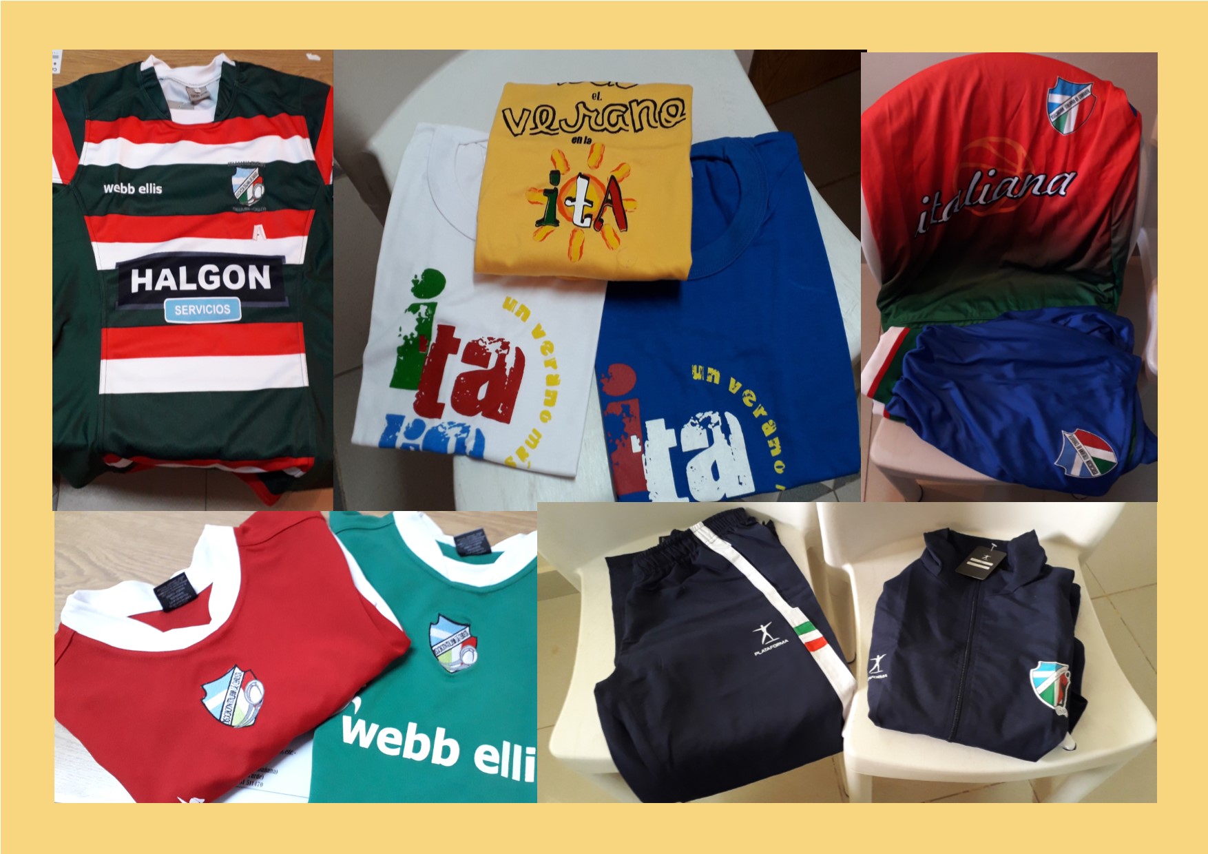 Rugby: Camisetas de niños ( talles 6 a 12), remeras de entrenamiento ( talles S - M), medias y últimos stocks de camisetas de juego y pantalón en talles de adultos.