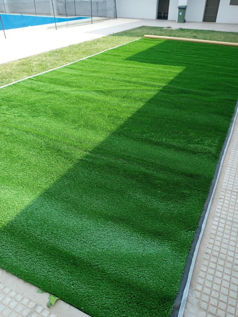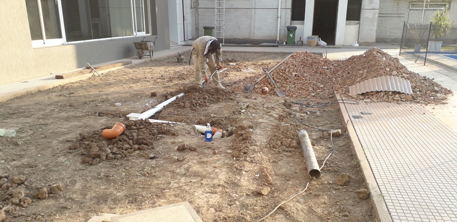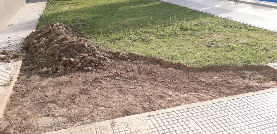 Comenzaron las tareas de remoción del césped en sector quincho del Natatorio, para dar paso a la colocación del sintético, tal cual estaba previsto. Se realiza la compactación y nivelado del suelo, se prepara una base de cemento donde se alojara el artificial. También se colocan cañerias de pvc para el desague en el sector. Una vez terminadas estas tareas, se instalaran dos rollos de césped de 4mts ancho x 10mts largo por 27 milímetros de espesor. Este césped artificial, tiene múltiples ventajas, entre ellas: un aspecto impecable y muy realista, su altura es uniforme, es suave al tacto, resiste un uso intensivo y no se desgarra, no necesita riego ni uso de pesticidas, se evitará la generación de hormigueros y malezas. Otra importante inversión para dar un confort al socio en la temporada estival que se acerca.