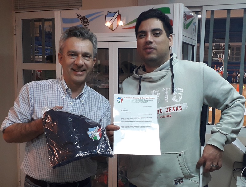 El presidente de la Institución, Marcelo Golob le hizo entrega formal de la Resolución del Consejo Directivo donde se aprobó la medida y una remera del club.