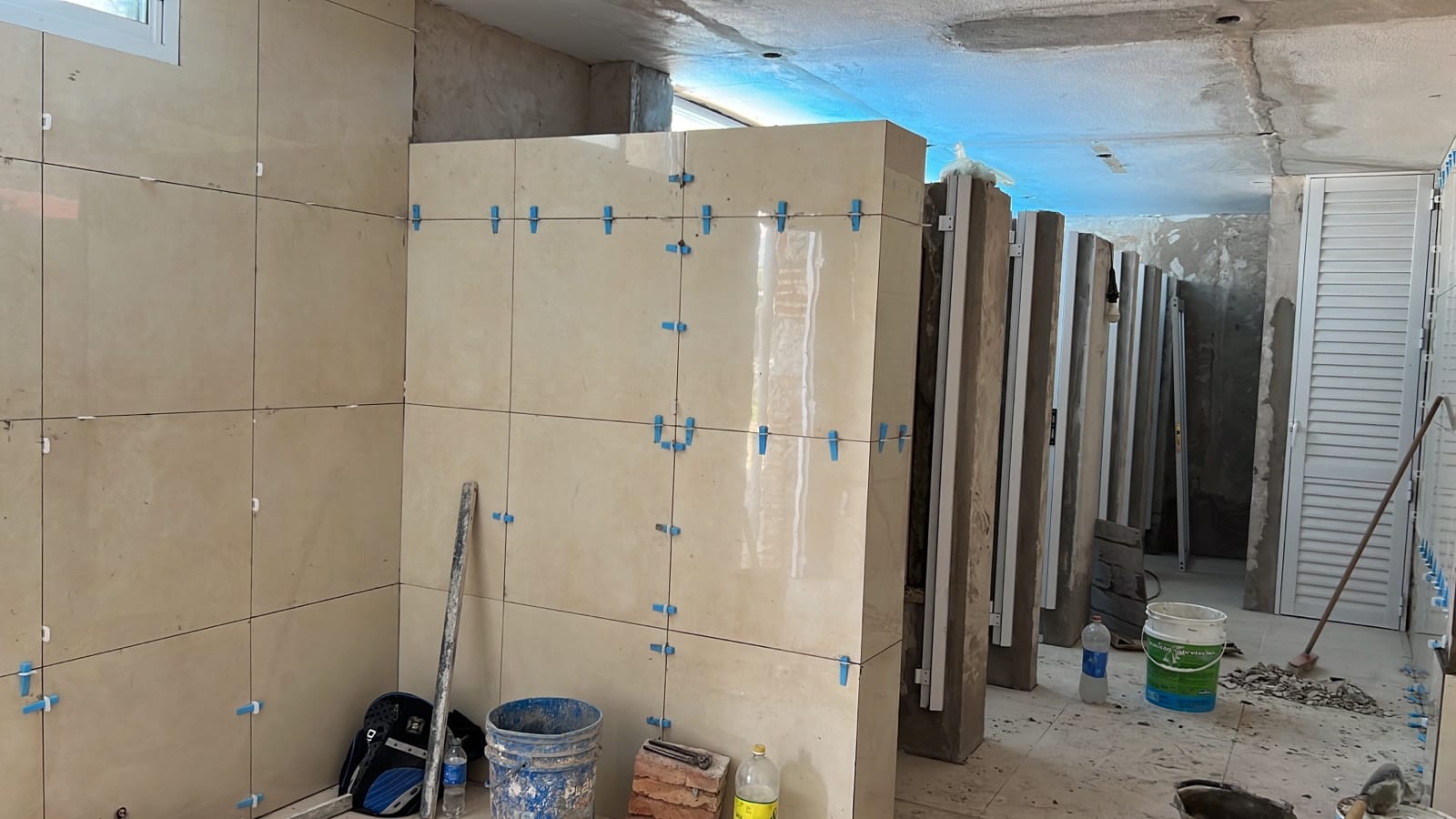 Trabajos de colocación  de porcelanatos pulidos y sin pulir en los vestuarios del Natatorio.