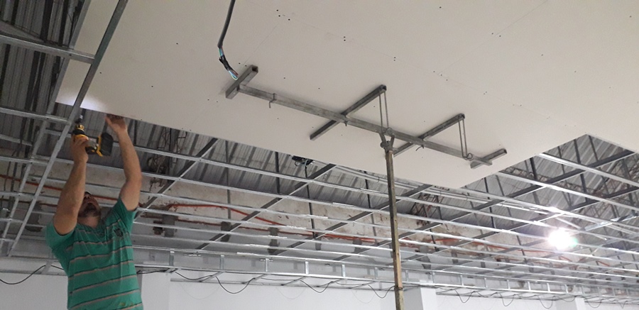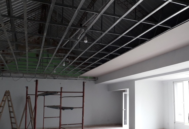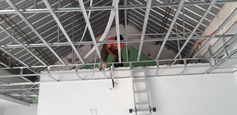 Luego de la colocación de los perfiles, comenzó la instalación de las placas de yeso del cielo raso del quincho ubicado en el Natatorio de la sede central. A ésta tarea, se suma la instalación del aire split de 18000 Frigorías y demás instalaciones eléctricas de luminarias de emergencia. El quincho va tomando color para la temporada de verano que se acerca. Asociación Italiana brindando las mejores instalaciones para sus asociados.
