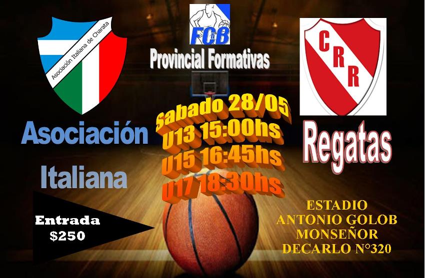 Una tarde a puro básquet se vivira éste sábado en el Estadio Antonio Golob, dónde las categorías formativas  reciben a Regatas de Resistencia. Los pibes  buscaran la revancha luego de las derrotas en Resistencia. Entrada $250. Servicio de cantina con tortas, bebidas y agua caliente. Inicio: 15:00hs. Los esperamos