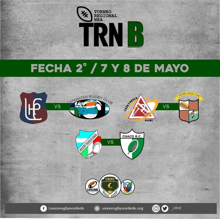 El sábado 7 comienza la fecha donde Pay Ubre de Corrientes recibe a Cataratas desde las 16:hs. Mismo horario en Formosa para Caza y Pesca vs Tacurú Social Club de Posadas. Organiza: Unión de Rugby del Nordeste.-