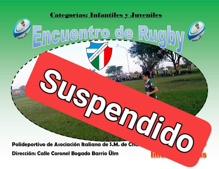 Debido a las malas condiciones clímaticas, la subcomisión organizadora del Encuentro de rugby infantil ha sido suspendido para el Domingo 5 de Junio a las 13:00hs.