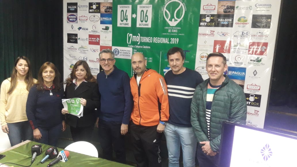 En conferencia de prensa realizada en el Salón Verde de la Institución se presento el Torneo de Tenis correspondiente la 7ma etapa de Circuito Regional Seniors a realizarse los días 4, 5 y 6 de octubre en las 4 canchas de polvo de ladrillo en el predio polideportivo ubicado en el Barrio Ülm de la ciudad de Charata. En la conferencia estuvieron presentes el Presidente Alvaro Mario Vattolo, Verónica Capeta presidente de la Federación Chaqueña de Tenis, Mabel Chaparro Secretaria de Relaciones Institucionales, el Profesor Leonardo Demichelis, Jorge Bade y Leonardo Bouzik de la subcomision de tenis. Se recibirá la visita de más de 80 deportistas de Chaco, Corrientes, Formosa y Misiones que competirán por el premio y puntos para el ranking. Desde la organización destacaron el acompañamiento del Municipio de Charata a este gran evento deportivo, el torneo más importante a nivel nacional que se disputara en el interior chaqueño, en el marco del 105° aniversario de la Perla del Oeste. Los miembros de la subcomision destacaron el apoyo recibido por parte de las empresas locales y de Lotería Chaqueña para llevar adelante el mismo. Se disputara en  caballeros categoría Libre en singles A-B-C, Mayores de 30 A-B-C, Mayores de 40 A-B-C, Mayores de 50 A-B y Mayores de 60 A-B, en damas se disputaran las categorías DOBLES Mayores de 30 A y B. Inscripciones al 3731-531640 - Prof: Mario Leonardo Demichelis o al email: Esta dirección de correo electrónico está siendo protegida contra los robots de spam. Necesita tener JavaScript habilitado para poder verlo.. Costo de Single es de $700 e incluye cena de sábado por la noche. Cierre de Inscripción: Miércoles 2 de Octubre. Además, se han incorporado 72 tubos de pelotas nuevas y se dispondrán de 2 cancheros para el mantenimiento, y el municipio colaborara con la instalación de luminarias. Habra menú de comidas y refrigerios  en el quincho del predio para los deportistas con el objeto de satisfacer sus necesidades y que tengan la mayor comodidad posible dentro de las instalaciones del club. Será la mayor fiesta del tenis en la ciudad y todos están invitados.