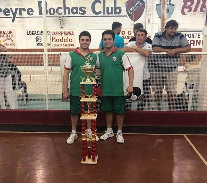 Las bochas de Asociación Italiana de Charata en lo más alto del podio a nivel Nacional. Los jóvenes Alejandro Capra y Gastón Gallegos se quedaron con el titulo en el torneo que se llevó a cabo en el Club Freyre en la Provincia de Córdoba durante el fin de semana próximo pasado. Fue triunfo en la gran final, segunda categoría, sobre el local por 15 a 5. Más de 100 equipos participaron de la gran movida. BIEN POR LOS PIBES !!!