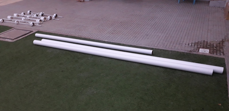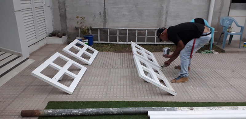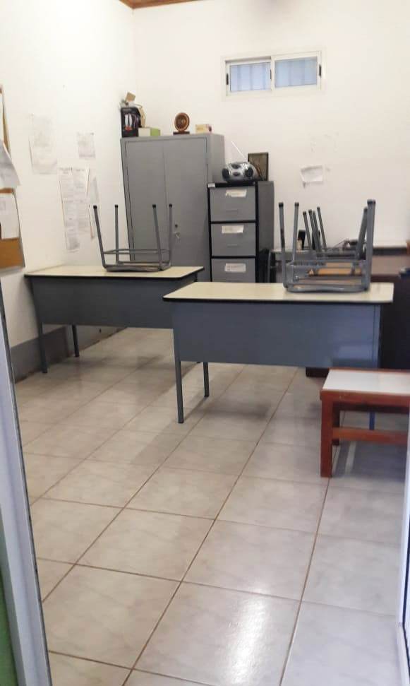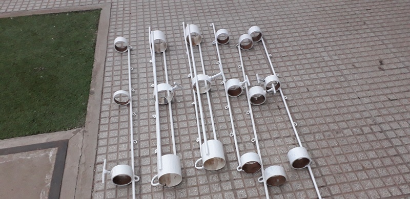 Ante el receso de las actividades deportivas, es el momento ideal de poner manos a la obra a las tareas de mantenimiento y pintura por parte del personal. En este caso, se están realizando los trabajos la pintura de los elementos de vóley (postes, parantes y soportes de caño). Además, se pintarán los aros de las jirafas de minibásquet. Mientras tanto, en el sector de cancha de Bochas, se realizan trabajo de reparaciones en paredes por problema de humedad. Por otro lado, el personal femenino de maestranza de la institución realizó trabajos de limpieza en las instalaciones donde se desempeña el Anexo de Instituto de Música (ISPEA) Lilia Perenno de Elizondo ubicada en el Barrio Ülm.-