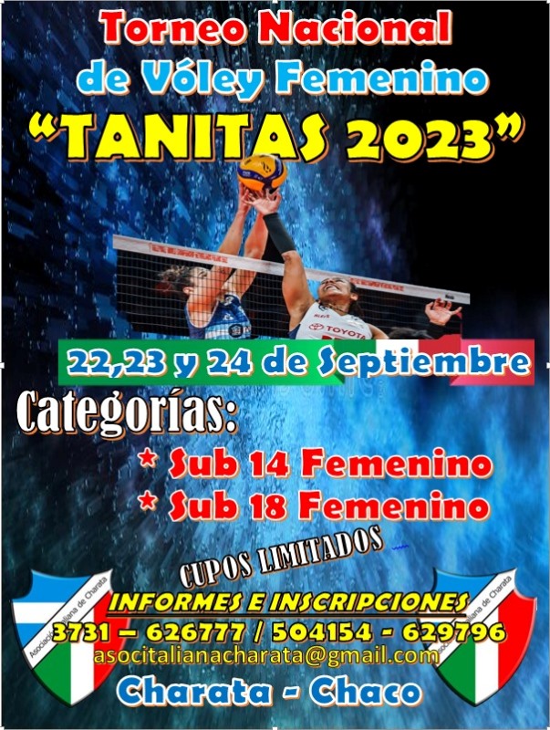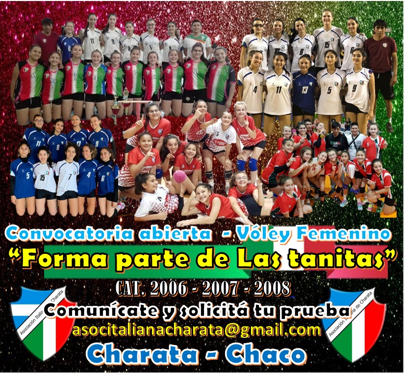 A partir del 1 de Marzo inician los entrenamientos en Vóley formativo y minivóley en Asociación Italiana de Charata. Las tanitas pueden inscribirse en Secretaria en horarios de 8 a 12 y 16 a 20hs.