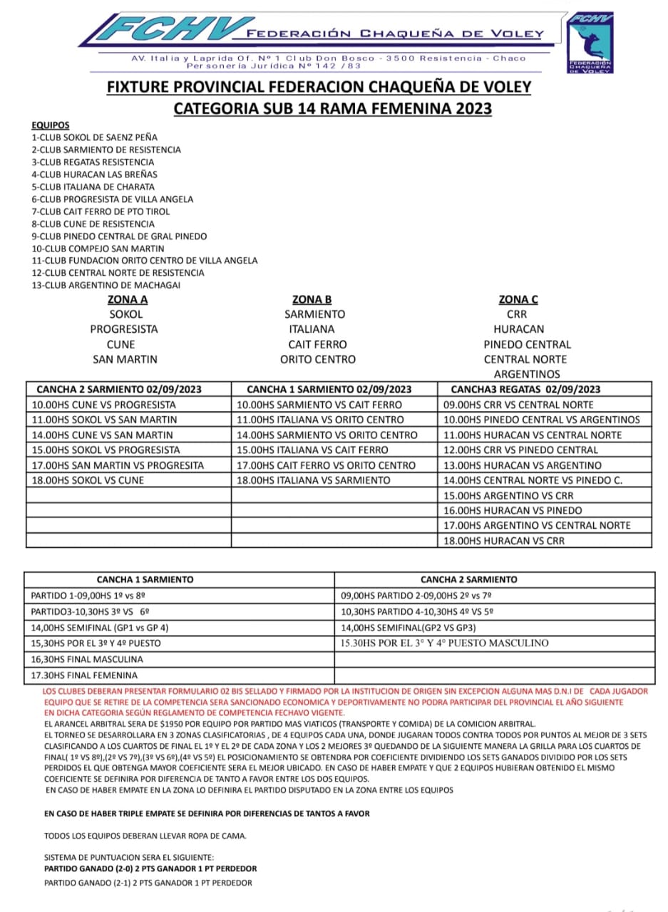 Italiana viaja este Viernes a Resistencia a disputar el Provincial Femenino de la categoría SUB 14 organizado por Federación Chaqueña de Voley en las instalaciones de los clubes Sarmiento y Regatas. El torneo que inicia el sábado, lo disputarán 13 clubes en busca del campeonato y clasificación a la Copa Argentina.  Las tanitas integran el grupo B  y debutan ante Orito de Villa Ángela a las 11hs. Desde las 15hs se verán las caras con Ferro de Puerto Tirol, cerrando la jornada a las 18hs ante el local, Sarmiento. El equipo dirigido por Énzo Cácerez buscará clasificar entre los 8 mejores, para afrontar los cuartos de final el día domingo por la mañana. Las finales se disputarán en el horario matutino.