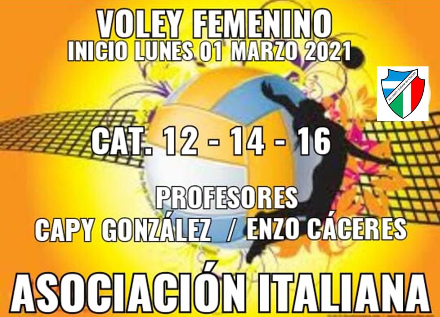 El voley femenino formativo inicia su actividad este 1 de Marzo en las categorías Sub12 a Sub16 en Asociación Italiana. Como años anteriores, los profesores serán Daniel Capi Gonzalez y Enzo Cacerez. Te esperamos para jugar, saltar y rematar con todas tus fuerzas y formar parte de las tanitas.-