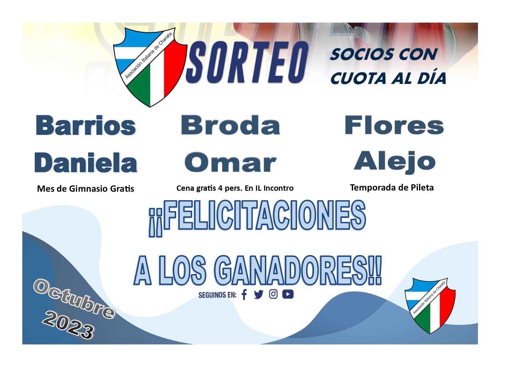 Comunicamos los ganadores del sorteo de socios con cuota al día en el mes de Octubre 2023