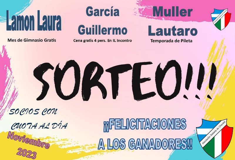 Comunicamos los ganadores del sorteo de socios con cuota al día en el mes de Noviembre 2023