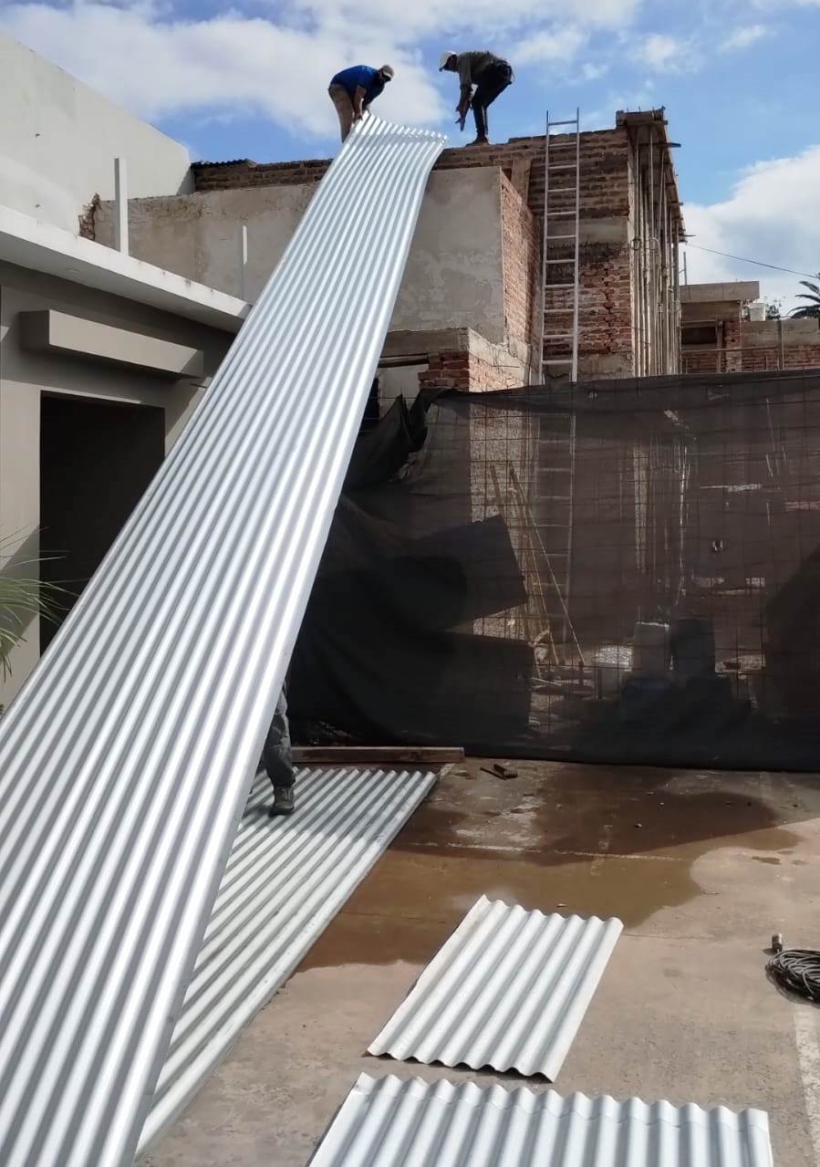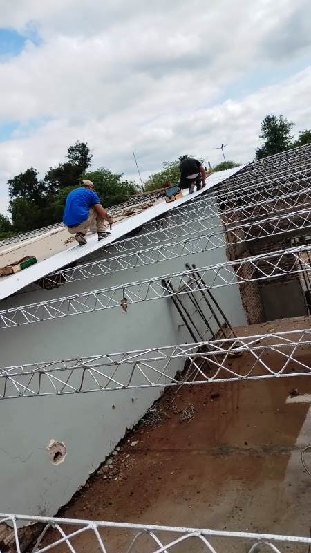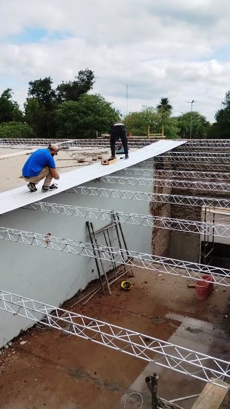 En la jornada de hoy se realizó por parte de la empresa constructora, la instalación de chapas en techo del sector de cocina en la Obra de Remodelación y ampliación del Salón Social. Éste sector ha sido trasladado, junto con otras dependencias hacia el lado oeste, lindante al Playón Deportivo. En la jornada de ayer, se trabajó en la colocación de una gran viga a lo largo del techo del Salón entre otros trabajos de carga. Pronto se demolerá la pared que divide el Salón con el sector de ex mutual y, con éstas tareas, culminan las obras de la segunda etapa interrumpiéndose la actividad hasta sumar nuevos recursos y acompañamientos económicos.