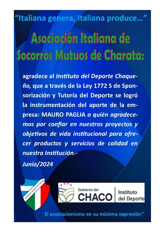 Instamos a los señores socios, directivos, personal y subcomisiones de nuestra entidad a seguir trabajando con más empeño, dedicación ad – honorem, con transparencia y con un perfil solidario, desarrollista para el crecimiento de toda nuestra Asociación Italiana de Socorros Mutuos de Charata. -